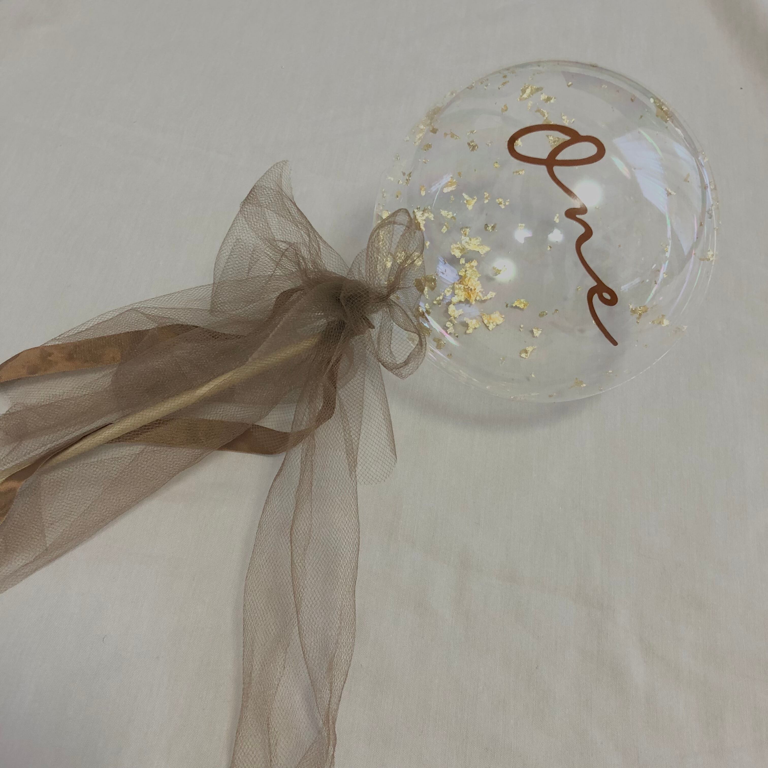 クリアなまんまるバルーンのなかに、ホログラムがきらり。